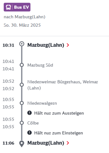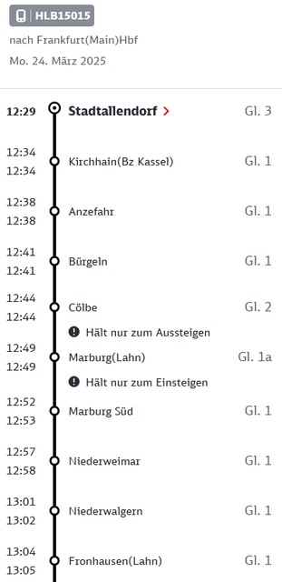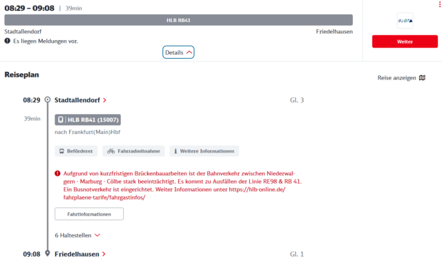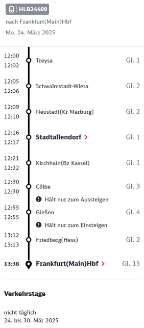Diese Verbindung gibt es nur auf dem Papier: Mittelhessen-Express am 22. Juli um 10:14 Uhr ab Marburg
