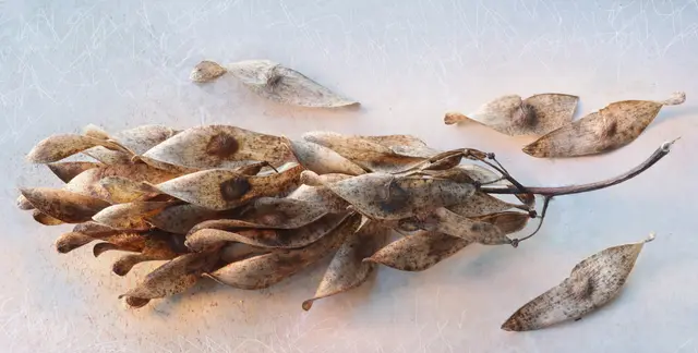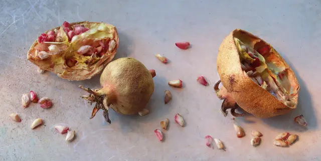 Reife Früchte mit dem deckelartigen sogen. "Diskusrest" an der Spitze und Samen.