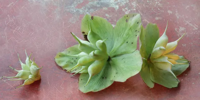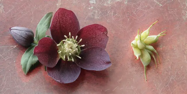Balgfrüchte und Blüte der Lenzrose