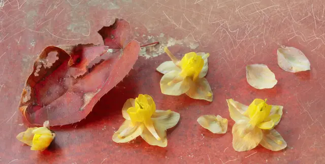 "Zu Boden gefallen, zur Wurzel geneigt - Abschied der Blüte." - Matsuo Bashō (1644 - 1694)