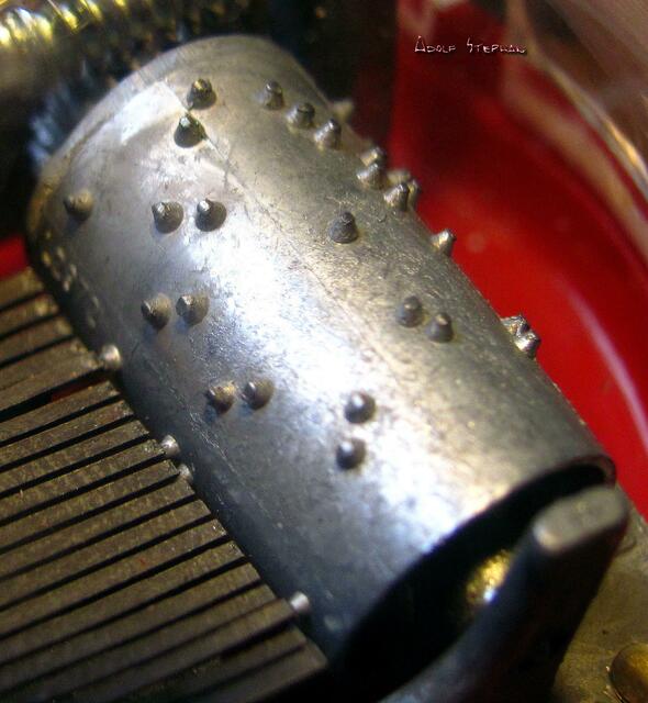 Wer kann sagen was das sein könnte , und welche Funktion dieses Gerät hat ? Zur Auflösung lege ich danach noch einige Fotos hinzu. Ihr hattet richtig geraten, zu sehen war die Walze und Stimmgabeln einer kleinen Spieldose. Hie die vollständigen Bilder des Gerätes.
