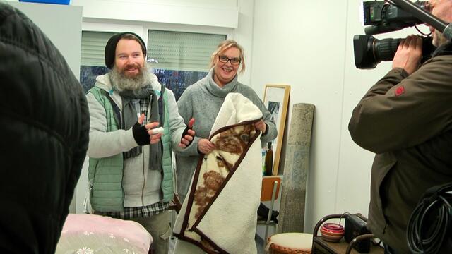 Freude über das Winterquartiert - der Obdachlose Horst (62) zusammen mit Projektgründer Max Bryan