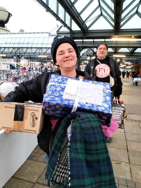 Weihnachten für Obdachlose - Sachspendenverteilung am Hauptbahnhof