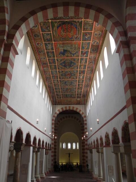 Die Michaeliskirche in Hildesheim wird renoviert und deshalb ist zur Zeit keine Bestuhlung in der Kirche, was einen tollen Eindruck der Größe dieser Kirche vermittelt. Fotografieren ist erlaubt,aber ohne Blitz und ohne Stativ. Man kann auch an Führungen teilnehmen und viel über diese Kirche erfahren, die seit 1985 zum Weltkulturerbe zählt. Geöffnet ist sie von 10-18Uhr und die Stühle kommen am Montag den 18.Juni wieder. Auch dann noch sehr sehenswert.