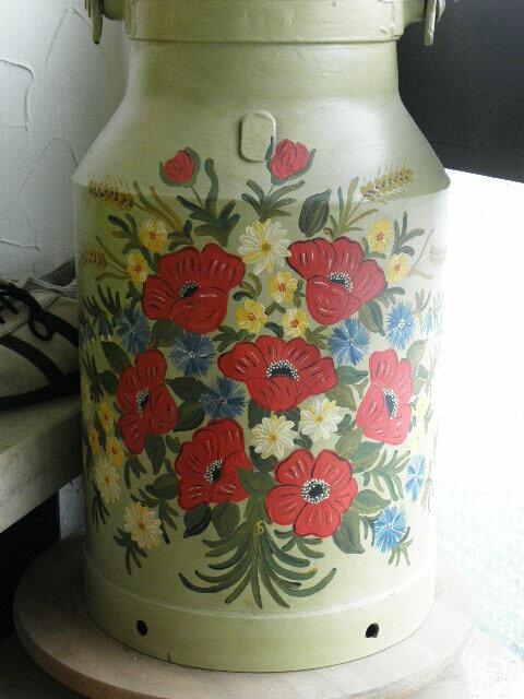 Diese alte Milchkanne habe ich ganz einfach zweckentfremdet. Von einer guten Freundin und sehr gute Malerin wurde die Kanne bemalt. Bei mir dient sie als Schirmständer. Mich würde interessieren, was ihr zu der Umgestaltung meint.