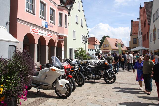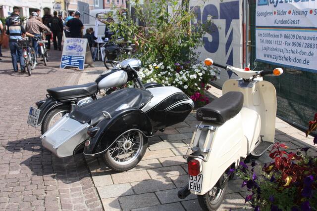 Es dürften bei einigen älteren Besuchern des 5. Oldtimer Tages in Donauwörth einige Erinnerungen geweckt worden sein, wenn sie sich die Oldtimer Motorräder ansahen. Beim 5. Oldtimer Tag in Donauwörth habe ich einige mit und ohne Beiwagen, mit und ohne Anhänger, bei der Fahrt, in der Reichsstraße und im Ried ausgestellte Oldtimer Motorräder fotografiert. Es gab fast alle Marken von BMW, NSU, Ducati, Zündapp, Maico und viele andere. Die Bilder passen sehr schön zur Romantischen Straße! Vorab die...