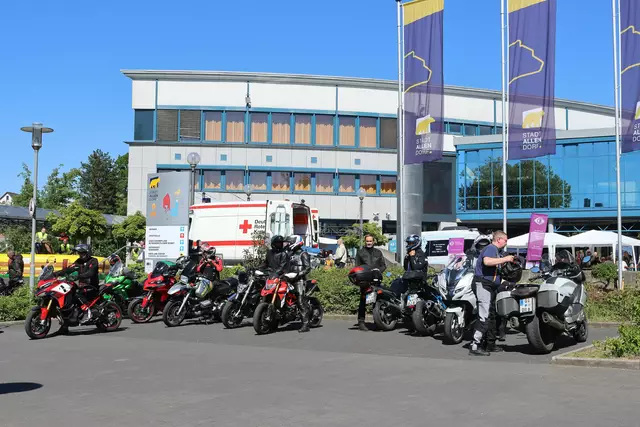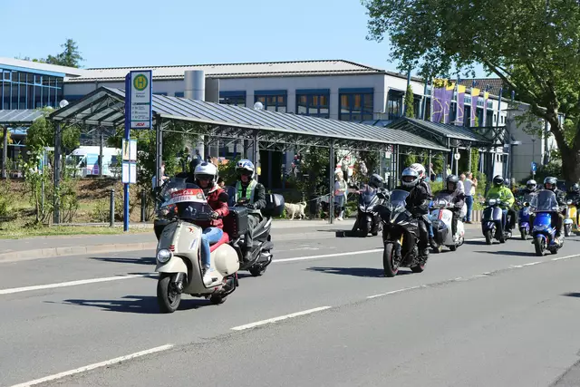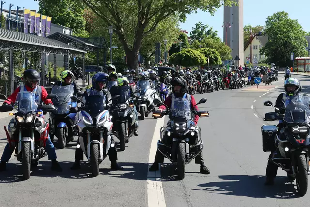 Der Bürgermeister (Bildmitte) im Kreis der Motorradfahrer