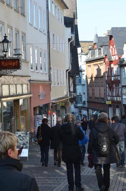 Kalt war es am letzten Samstag im Februar. Auch die kurze Zeit eines Marburgbesuchs muss wenigstens für einen kurzen Gang in die Oberstadt ausreichen. Das Parkhaus am Pilgrimstein rappelvoll. Ewigkeiten auf einen der Aufzüge gewartet, weil auf jedem Stockwerk Leute ausstiegen, um zu überlegen, was zu tun sei und dann wieder einstiegen – Kopfschüttel. Gedränge in der Oberstadt. Kaum drei Schritte, ohne anderen in die Haxen zu treten. Musikanten sorgten für musikalische Untermalung....