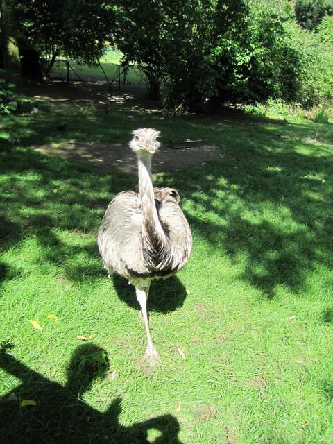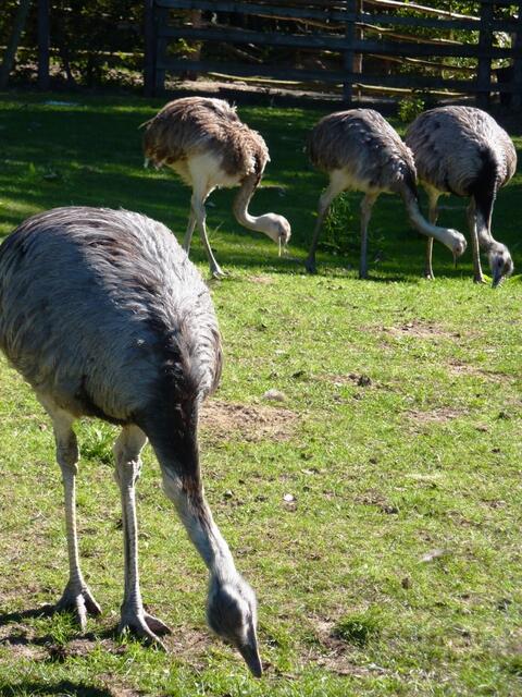Bei meinem Besuch im Bergtierpark Fürth-Erlenbach,kam ich auch am Gehege der Nandus vorbei. Mehrere der flugunfähigen Laufvögel kamen bis dicht ans Gitter. Auf abschüssigem Rasen,mit einer Hand am Gitter festhaltend,entstanden diese Aufnahmen. Bei einer Entfernung von 50 - 60 cm hoffte ich inständig,dass die Nandus mir weder auf die Finger picken,noch das Kameraobjektiv ,als Ziel anvisieren würde. Aber Ende gut,alles gut und die Fotos der,an einigen Stellen des Kopfes, kahlköpfigen Vögel im...
