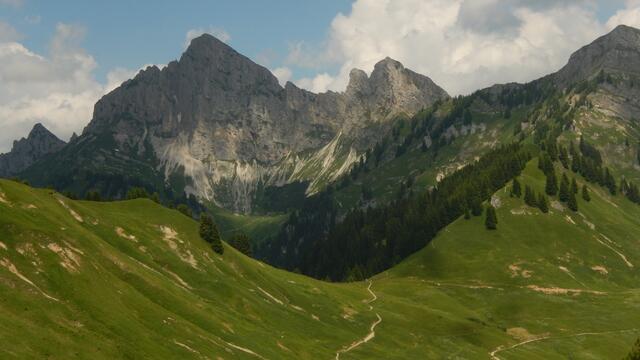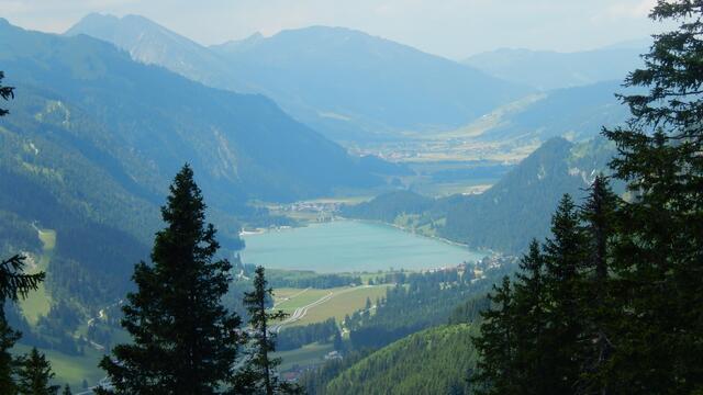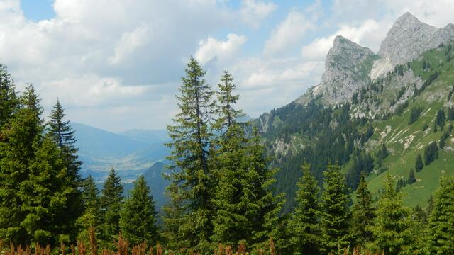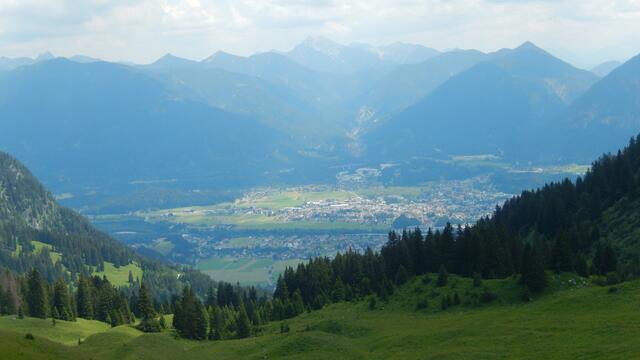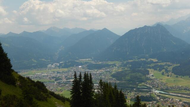 Hinauf mit der Hahnenkammbahn in Höfen bei Reutte in Tirol, gings ab der Bergbahnstation weiter bis zur Schneetalalm.  Zuerst mit traumhaften Blick hinunter ins Lechtal und mit Blick auf Reutte geht's dann weiter bei herrlichem Panorama schließlich bis zur Schneetalalm, von wo man dann einen Blick ins Tannheimer Tal hat.