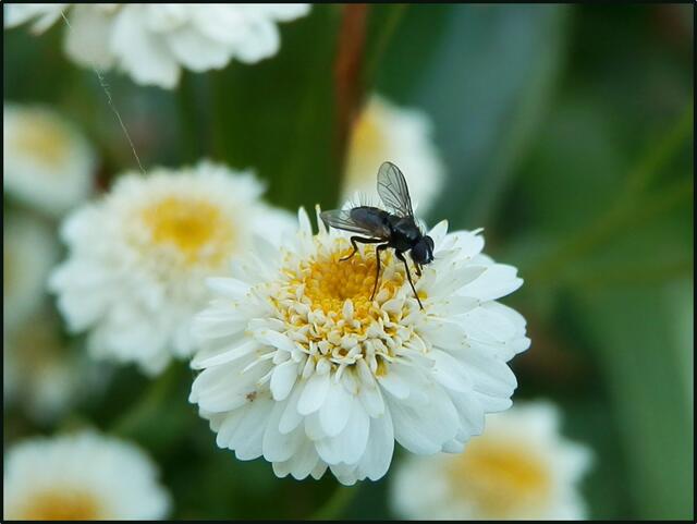 Diese Wespennest habe ich neulich durch Zufall beim Spaziergang durch eine Wiese entdeckt. Es war ganz frei an einem niedrigen Schlehenbusch befestigt. Sehr ungewöhnlich! Nach ein paar Aufnahmen wurden die Wespen ungemütlich, und ich habe mich an "richtige" Nahaufnahmen dann nicht mehr getraut...Zu Hause habe ich in meinem Insektenbuch nachgeschaut und herausgefunden, dass es sich um ein Nest der zierlichen Feldwespe handelt.