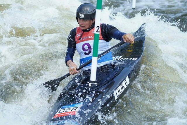 Die Schwabenkanutin Elena Lilik holt sich die Silbermedaille beim Auftakt des ICF Kanuslaloms im Prag im Kajak Einer.
