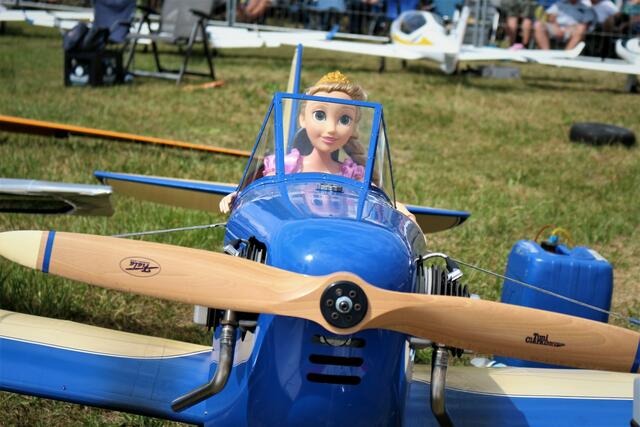 Wer sagt´s denn, Frauen können auch fliegen! Mich erinnert etwas an ,,Rapunzel, lass dein Haar herunter"! Aber nicht nur Frauen sondern auch Bären und andere Puppen! Bei der Air Meet 2022 in Genderkingen konnte ich auch einige Modellflugzeuge entdecken die eine Puppe als Pilot an Bord hatten. Es gab auch Düsen-Jet mit echte Piloten (Puppen)!  Ich finde es schaut origineller aus als ohne!