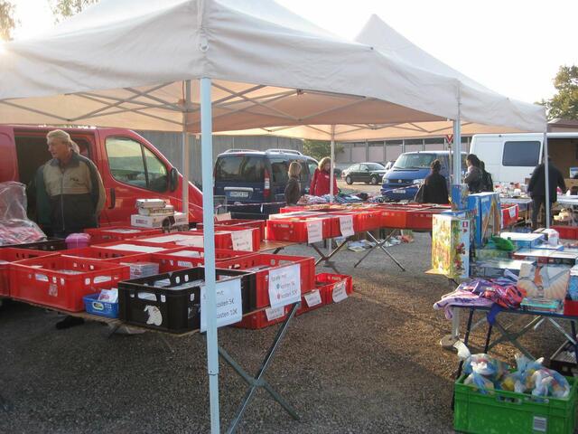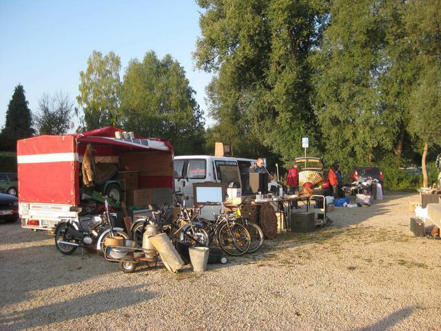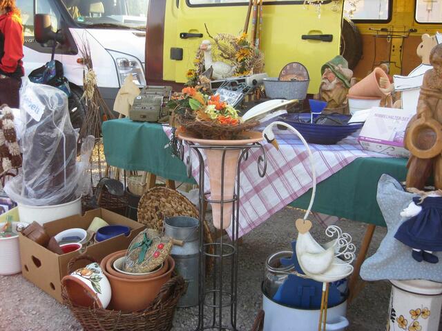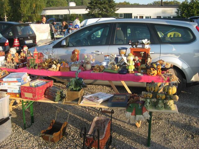 Am Sonntag, den 2. Oktober war es wieder so weit. Noch früher als beim Letztenmal stellten sich die Anbieter an um einen guten Platz zu ergattern und wurden flott von den Veranstaltern zu ihren Standplätzen dirigiert. Das noch nebelige, ungemütliche Wetter hielt keinen davon ab, so schnell wie möglich seine Waren anzubieten. Auch Käufer waren schon frühmorgens mit Taschenlampen auf Schnäppchensuche. Ab 10 Uhr wurde das Wetter schöner und viele Besucher schlenderten gemütlich über den Flohmarkt....