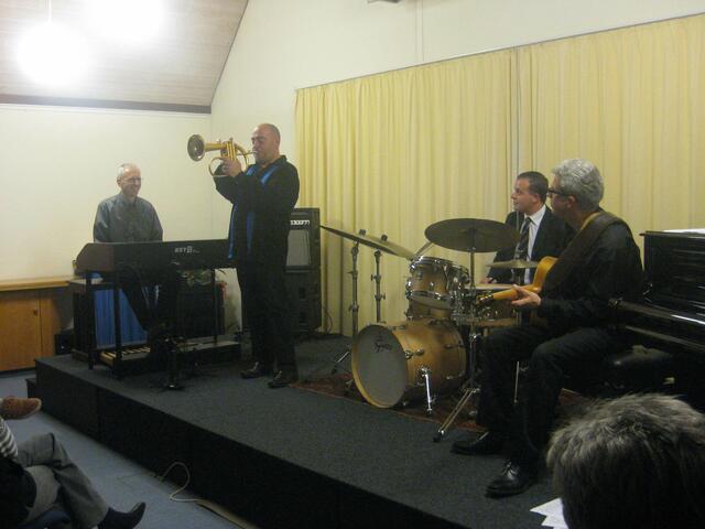 **Konzertreihe der Stadt Rain in Zusammenarbeit mit dem Birdland-Jazzclub Neuburg/Do.** Am Freitag boten vier Spitzen-Musiker im vollbesetztem Raiffeisensaal in Rain ein Jazz-Konzert der Extraklasse. Immer wieder zogen die Akteure auch durch überzeugende Solos die Besucher in ihren Bann: der Passauer Helmut Kagerer an der Jazzgitarre, der Organist und Pianist Rento Chicco aus Italien, der Franzose Stephane Belmondo an der Trompete und der Schlagzeuger Bernd Reiter aus Österreich wurden dafür...