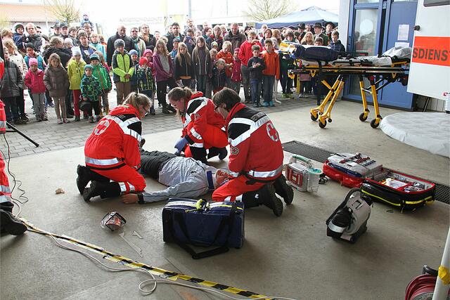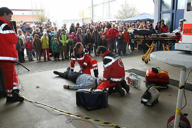 Schwindelerregende Live-Aktionen der Höhenretter, Luftballonwettbewerb, Blaulicht-Bobby-Cars und Rettungshunde ergänzen Ausstellung und Bühnenprogramm