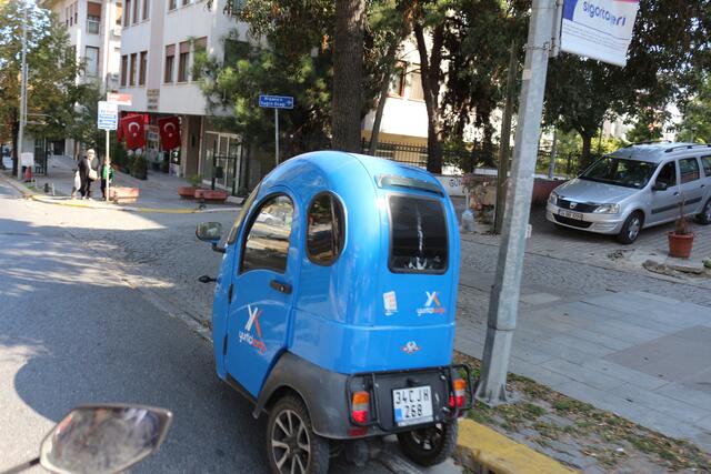 Hier habe ich bei meiner Aufenthalt voriges Jahr in der Türkei einige Kleinfahrzeuge fotografiert.  Diese Fahrzeuge scheinen sehr beliebt und Werbewirksam zu sein. Bei der ersten Fahrzeug sieht man einen Imam in die Moschee flitzen. Fahrzeug zwei scheint aus Badewanne zu sein. Drittes Roller ist ein Lieferfahrzeug! Viertes Fahrzeug hat Rollos!  Fahrzeug fünf mit wegfahrsperre! Hotel Werbung Fahrzeug sechs. Polizei Auto Nummer sieben. Fahrzeug acht Ticket-Verkaufsauto für Sightseeing Nummer zehn...