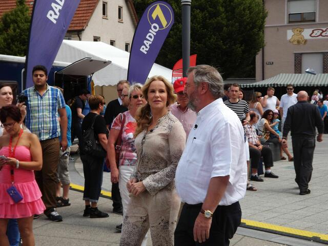 RTL Moderatorin Katja Burkhard hier bei Dreharbeiten mit Margarete Steiff´s Urgroßenkel Joachim Steiff