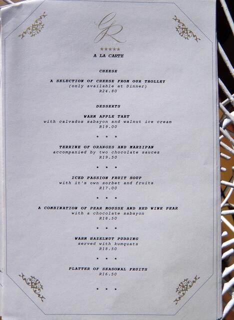 1994 war ich in verschiedenen Teilen Südafrikas unterwegs, um wieder einmal für das Reisebuch "Erlebnis südliches Südafrika" zu recherchieren. Dabei kam es zu erfreulichen kulinarischen Begegnungen, wie die hier abgelichteten Speisenkarten andeuten. Mehr davon, allerdings nur per Prosa, im Papierbuch oder in den Südafrika-Ebooks. Gefunden, verspeist und gut verdaut in: ... den beiden Restaurants "Crystal Court" und "Villa del Palazzo" im Resort The Palace of The Lost City Sun City, Südafrika...