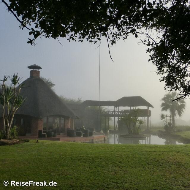 Nach den vielen Tagen, die wir inzwischen auf Foto-Safaris verbracht haben, tut es ganz gut, einmal einen Ruhetag einzulegen. Ruhig ist es hier. Noch. Denn schon hat sich eine Groß-Familienfeier angekündigt, die ab dem nächsten Nachmittag die ganze Lodge in Beschlag nehmen wird. Doch wir sind momentan mit einem anderen Paar, das wohl ein romantisches Wochenende verbringen will (den Geräuschen aus seinem Rondavel zu entnehmen, in das es in regelmäßigen Abständen von der Bar her pendelt), allein...