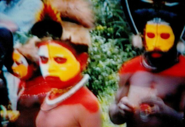 Das Dorf hat sich versammelt oder genauer : alle Männer sind auf dem Festplatz. Frauen und Kinder haben sich irgendwo im dichten Dchungel drum herum verborgen und blicken auf die Lichtung im Hochland von Papua Neuguinea. Die Männer der Huli haben begonnen, sich mit grellem Gelb wie mit reinsten Blütenpollen die Gesichter zu bemalen. Auch helles grelles Blau macht die Runde. Dies haben die Missionare mitgebracht, die davon ein wenig in die schmutziggelbe Waschbrühe geben, damit ihre weissen...