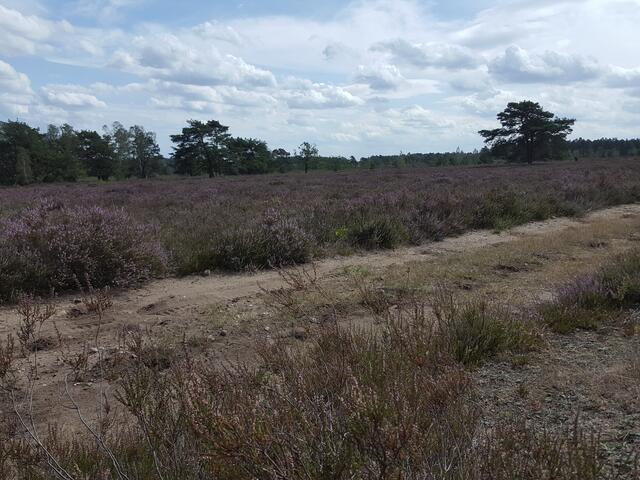 Heidschnucken, Silvestersee und Heide soweit das Auge reicht