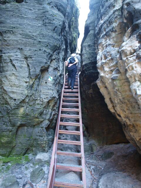 Sächsische Schweiz – Ein Jahr zuvor Tag 7 Heute wollen wir uns von der Häntzschelstiege ausruhen. Wir fahren über Bad Schandau entlang der Elbe in das nahe gelegene Hrensko. Labe nennen die Tschechen hier die Elbe. Entlang den Straßen bieten die Vietnamesen (Fidschis) ihre Produkte feil. Kleidung, wie Jacken, Pullover, Hemden, Schals. Parfüm gibt es, Schnaps, Oblaten, Uhren. Weiter geht es nach Tyssa. Wir besuchen in den Tyssaer Wänden das Felsenlabyrinth mit verschiedenen Felsformationen....