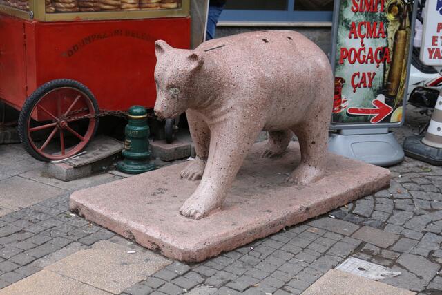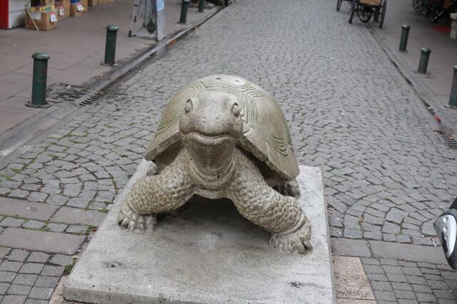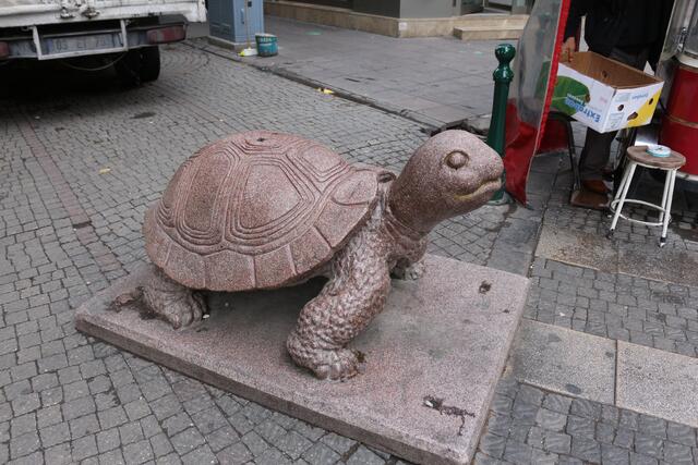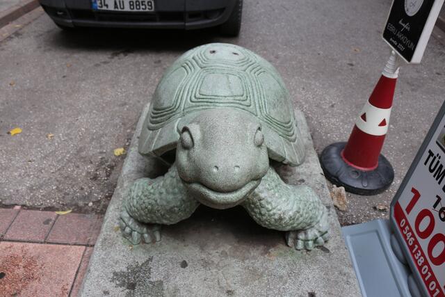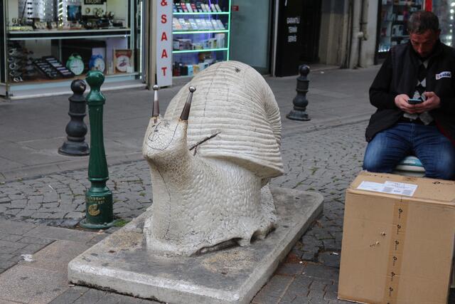 Hier habe ich in Eskişehir  einige schöne Absperrungen für Verkehrsfreie Zonen fotografiert. Es sind massive Steine mit interessanten Tieren wie Schildkröte, Schnecke und Bär. Wie ich finde drückt es Geduld, Kraft, Ausdauer- und Ruhe aus. Man hat vorher anscheinend Eisenstäbe gehabt, das haben die Autofahrer einfach umgefahren. Also hat man etwas massiveres angebracht. Es schaut besser aus und ist auch bei den Kindern sehr beliebt. Gut dass niemand drauf kommt so ein Skulptur einfach...