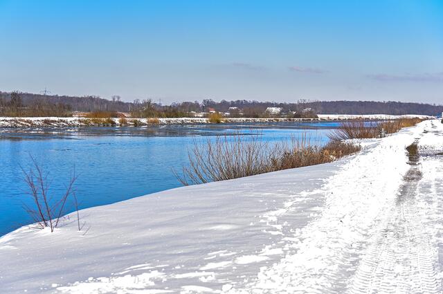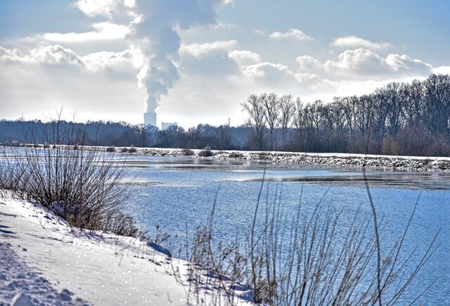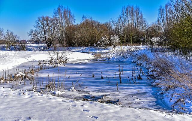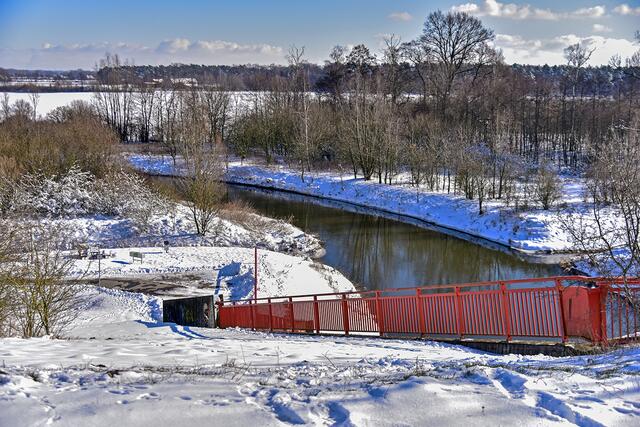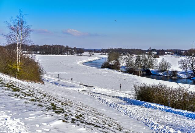 Schneespaziergang: An der Kreuzung von Dortmund-Ems-Kanal und Stever bei Selm