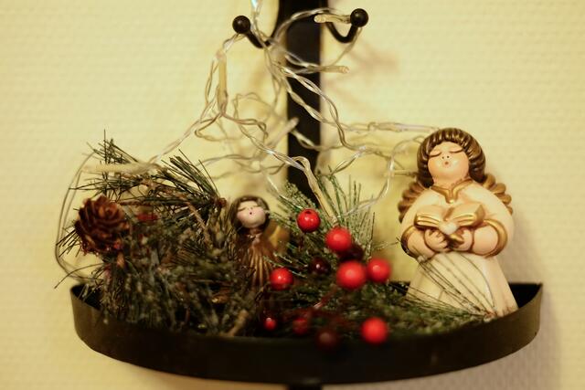 Sie haben sich schon eingefunden in den Gängen des Christlichen Seniorenzentrums: Engel, Wichtel und sonstige Weihnachtsgesellen.  Jedes Jahr schmücken die Bewohner ihre Flure, damit ein Flair von Weihnachten durch's Haus zieht. Jeder kleine Tisch und jede Nische bekommen etwas ab. Der Anfang ist gemacht. Demnächst wird auch noch eine Krippen-Szene aufgebaut und ein Weihnachtsbaum im Foyer. Den sieht man dann durch das große Fester von außen schon funkeln. Ich bleibe dran :)