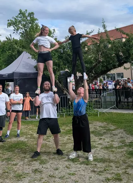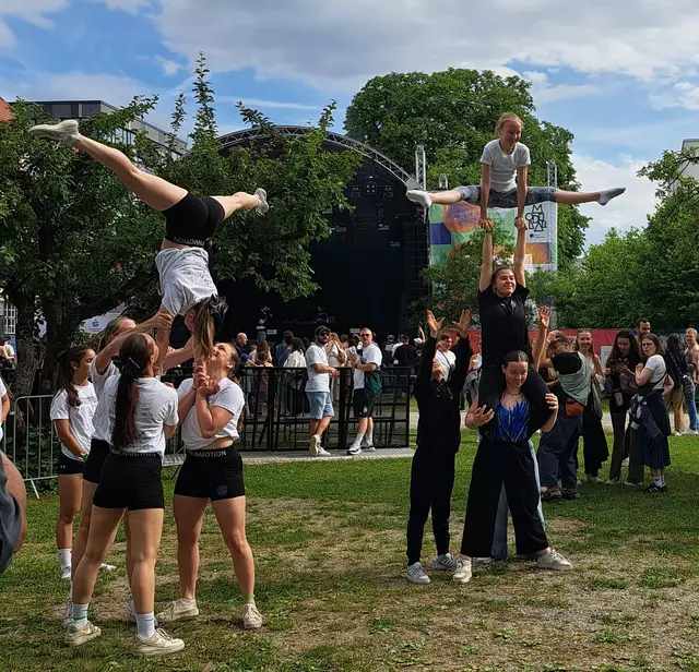 Am 28.7.23 war es so weit und das Warten hatte ein Ende. Um 17:00 - 18:00 Uhr auf dem Rathausplatz und um 19:00 - 20:00 Uhr auf dem Elias-Holl-Platz waren unsere Auftritte geplant. Auf dem Rathausplatz stand eine Bühne zur Verfügung, die wir teilweise nutzen konnten. Für die spektakulären Flugelemente unserer Leistungssportler war das Bühnendach leider drei Meter zu niedrig. Um 16:30 Uhr bauten wir unser Equipment auf und unsere Gruppen begannen sich aufzuwärmen und ihre Choreografien nochmals...