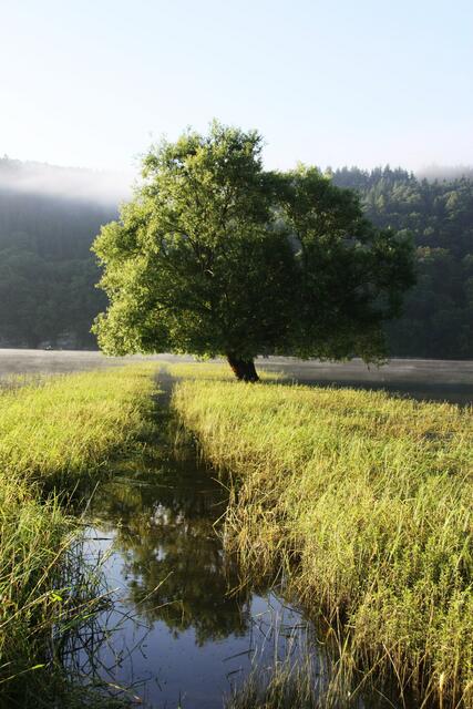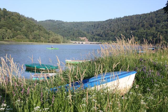 Mein Sonntagmorgenspaziergang mit Ida fand heute mal wieder in Herzhausen statt. In den vergangenen Tagen hat man am Edersee kräftig Wasser für die Weserschifffahrt abgelassen, aber trotzdem ist für die Jahreszeit immer noch ungewöhnlich viel Wasser im See. In Herzhausen kann man nun fast schon wieder bis zum "Baum im See" laufen, und die verlassenen Haubentauchernester anschauen. Fast alle Jungen sind rechtzeitig vor Ablassen des Wassers geschlüpft und man sieht viele der Vögel mit den Jungen...