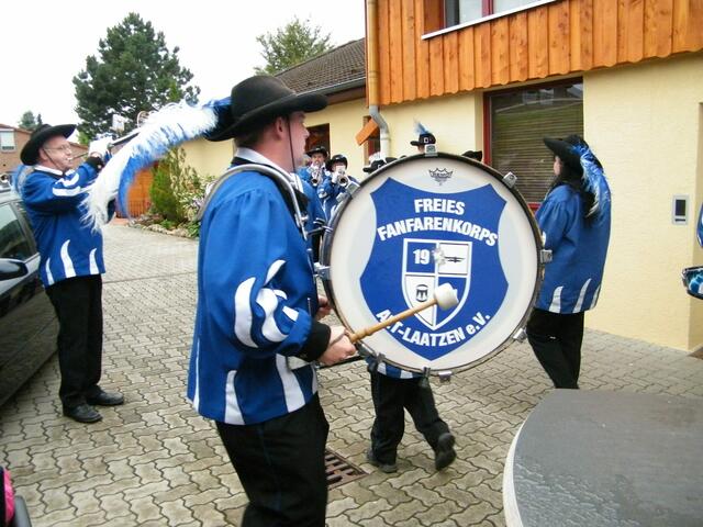 Am vergangenen Samstag den 03.07.2010 hat das Freie Fanfarenkorps Alt-Laatzen e. V. seinem ersten Kassierer Wolfgang Stenske, in Laatzen-Mitte musikalisch zum 40. Geburtstag gratuliert. Völlig überrascht von dem lautstarken Geburtstagsgruß, bekam das Geburtstagskind auch noch einen schicken Geburtstagsgruß in Form einer persönlichen Geburtstagskarte vom ersten Vorsitzenden des Fanfarenkorps überreicht. Auch die zahlreichen Nachbarn im Mozartweg in Laatzen hatten Ihren Spaß und schauten...