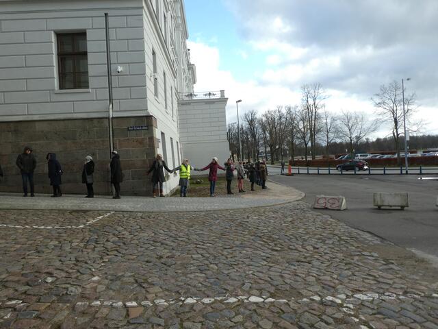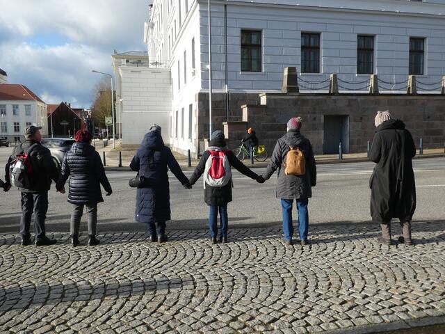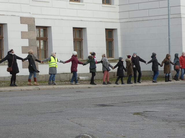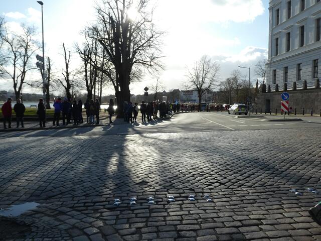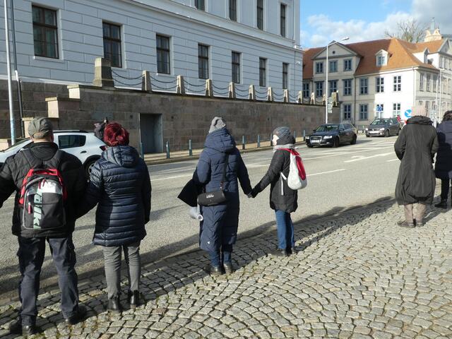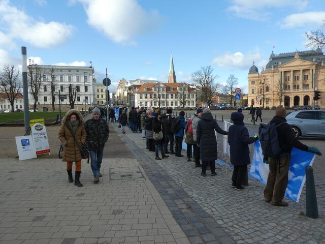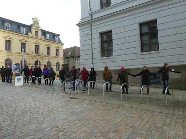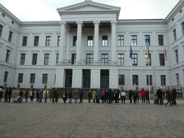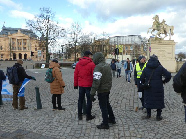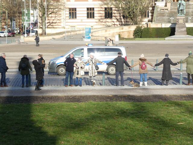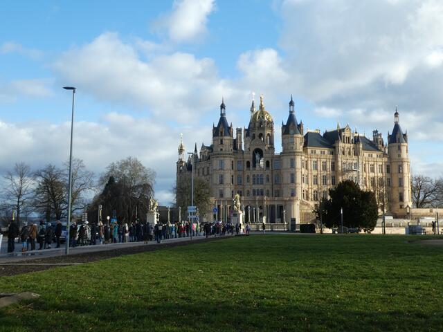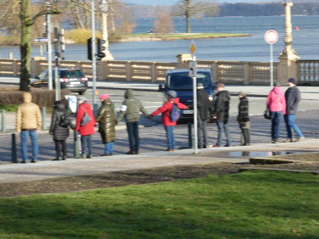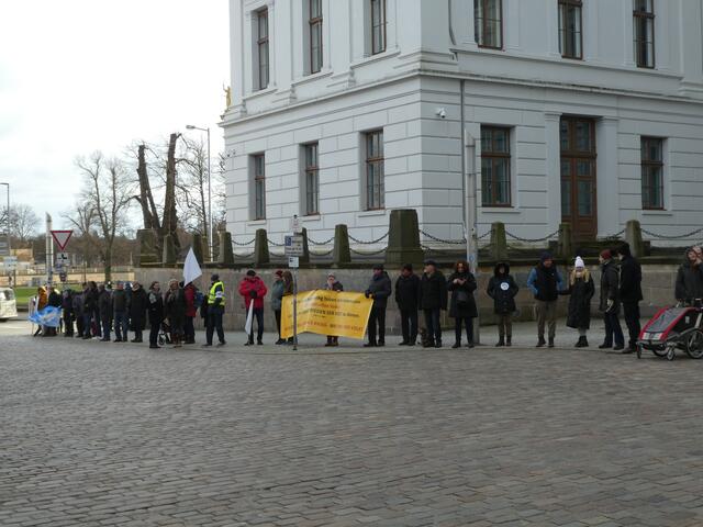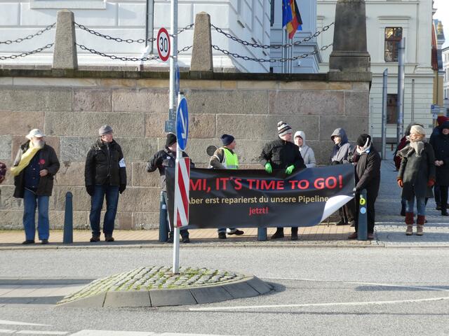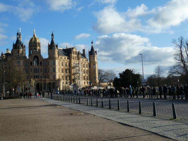 Zu einer Demonstration gegen den Krieg und für den Frieden versammelten sich ca. 200 - 250 Bürger aus den umliegenden Städten wie Hagenow und Ludwigslust und weitere Dörfern des Schweriner Umlandes in Schwerin, zwischen der Staatskanzlei und dem Schweriner Schloss. Bei eisigen Wind hielten diese Menschen tapfer durch und versuchten die Staatskanzlei mit einer Menschenkette zu umrunden. leider rechte es am Ende zwar nicht, aber die Botschaft war gut angekommen. Der 360 Grad Kreis schloss sich...