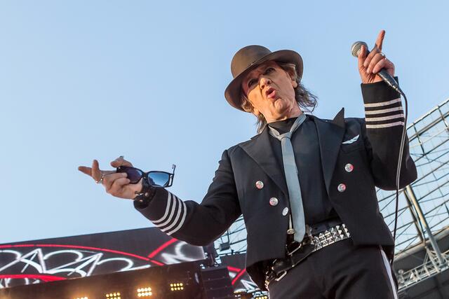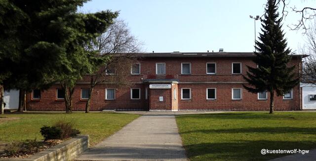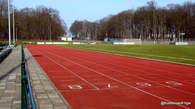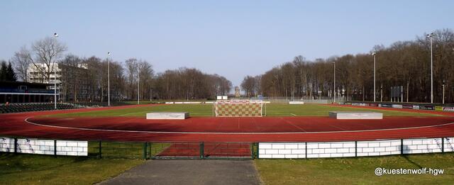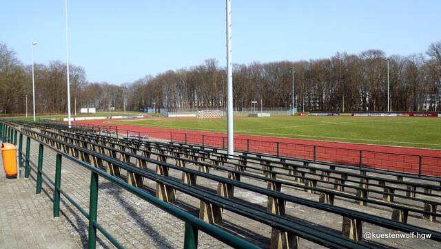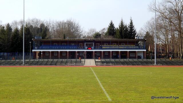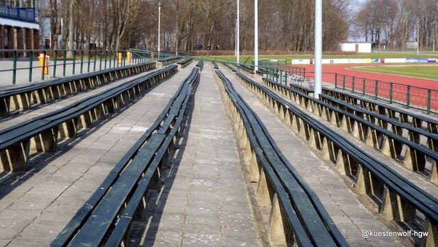 Sportgelände mit einer überdachten Sitztribüne ausgestattet