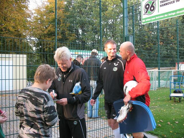 Eines Tages kam unsere Jugendleiterin Susanne und sagte uns, dass wir mit Hannover 96 auflaufen dürfen. „Toll!“ „Super!“ „Spitze!“ Fabelhaft!“ „Cool!“ „Wirklich?“ „Hammerhart!“ „Geil!“ Wir waren alle völlig aus dem Häuschen, weil man ja nicht alle Tage mit berühmten Fußballspielern aufläuft. Susanne sagte lachend: „ Vielleicht verraten sie euch ein paar Tricks.“ Wir lachten alle mit. Wir warteten alle sehr und dann war der große Tag endlich da. Wir trafen uns, dann ging es los nach Hannover....