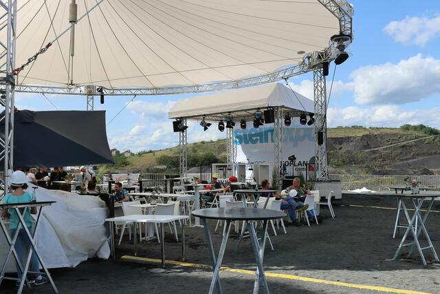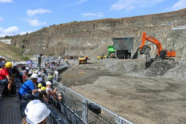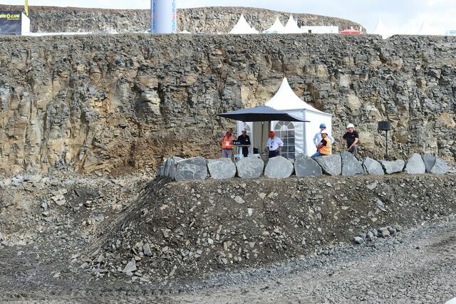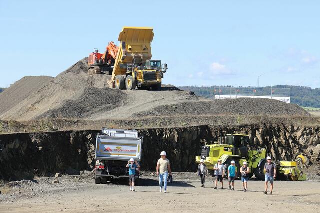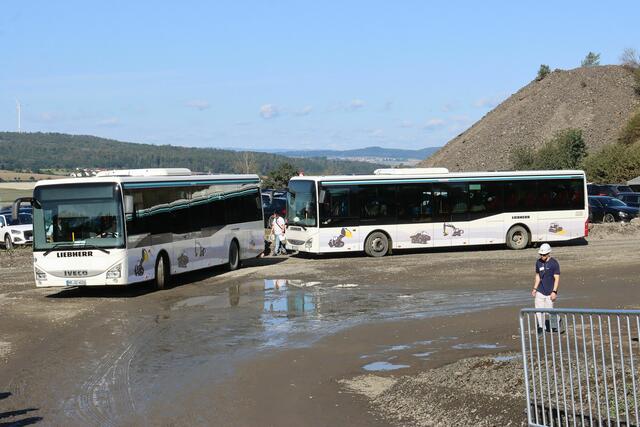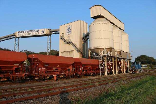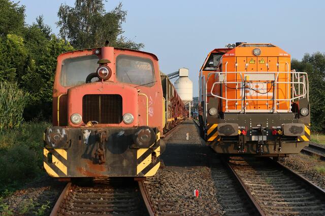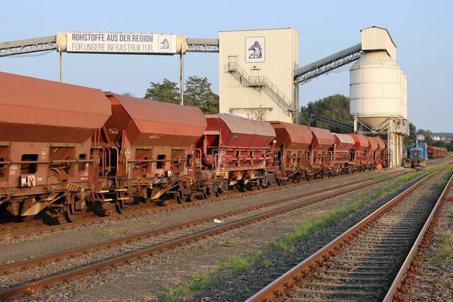 Als ich am 19.8.2024 abends am Steinbruch vorbeifuhr, standen dort zwei BBL-Mitarbeiter an der Straße und warteten wohl auf Abholung. Ich habe anschließend hinter dem Steinruch auf den Gleisen nachgeschaut, was sie mitgebracht hatten: eine erst in diesem Jahr fertiggestellte Diesellok, welche noch einen glänzenden Eindruch hinterließ.