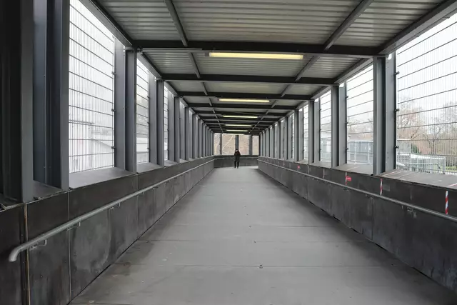 Auf einer Brücke über die Gleise im Bahnhof Stuttgart 21