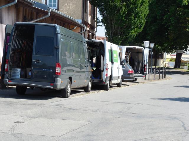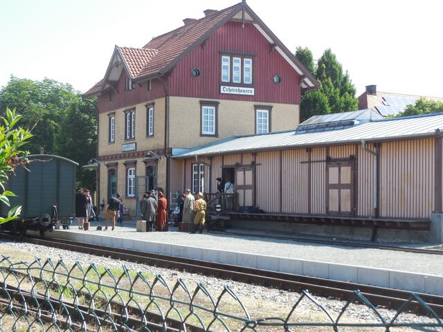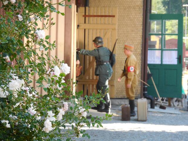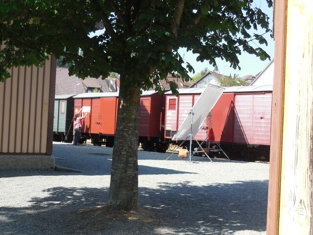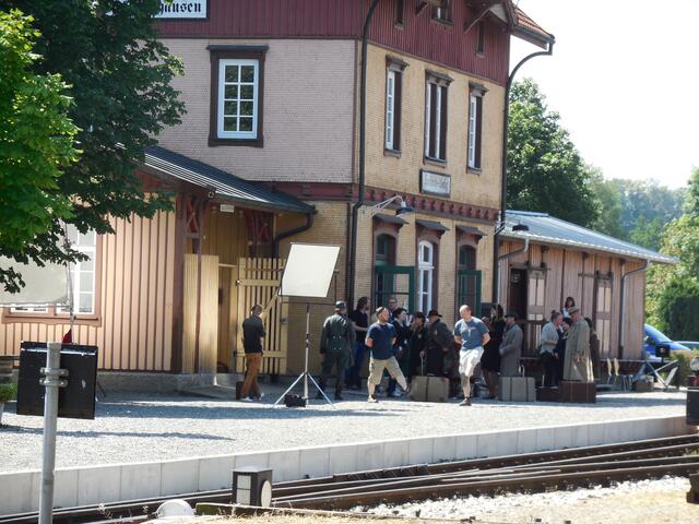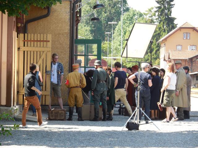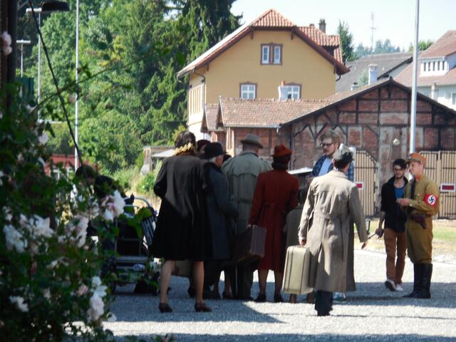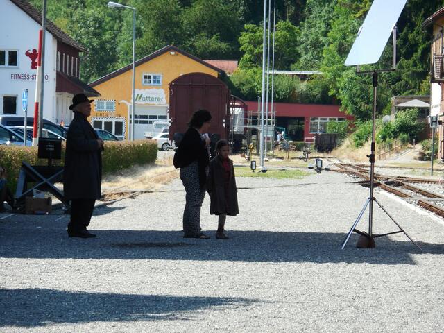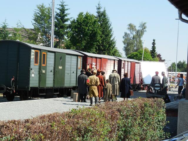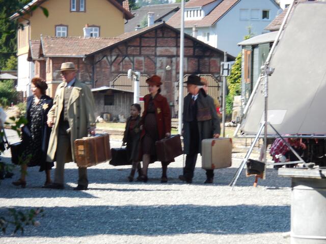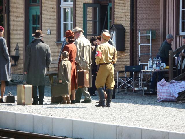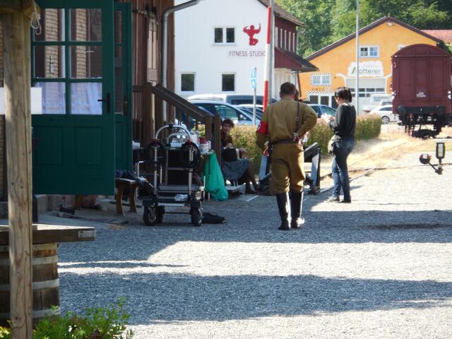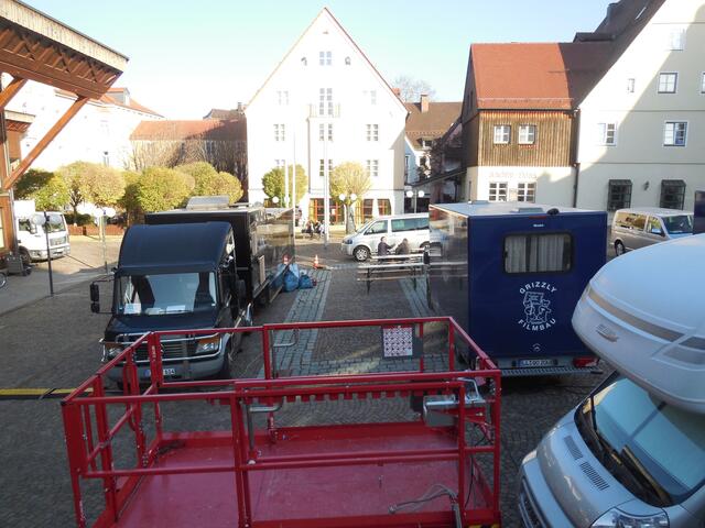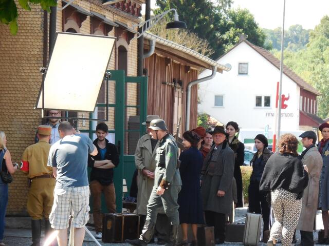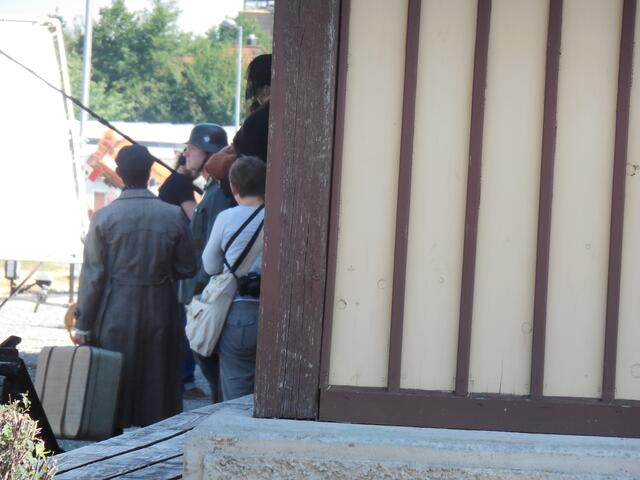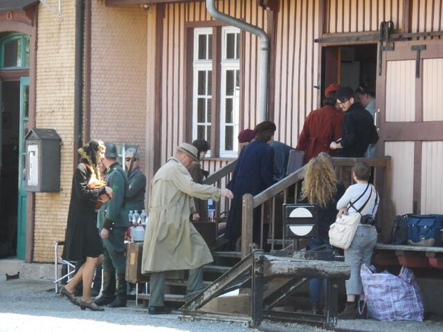 Eine ganze Reihe von Transportern brachte das Equipment für die Dreharbeiten, die letzte Woche am und im Ochsenhauser Öchlse-Bahnhof stattfanden. Alles was am Set gebraucht wird bzw. gebraucht werden könnte, u. a. unzählige Stative, Scheinwerfer, Kameras, Maskenbildner-Utensilien, Kleidung uvm. Es ging um eine historisch angelegte Dokumentation über die Geschichte Süddeutschlands, die für den SWR produziert wird. Komparsen wurden auch benötigt. Einige Ochsenhauser stellten sich zur Verfügung...