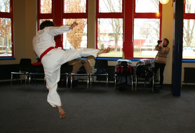 An beiden Messetagen auf der mega zeigten Ali Kocaman und seine jungen Kampfsportschüler auf dem Rathausplatz wieder ihr Können, und das - fast schon traditionell - am Samstag komplett in myheimat-T-Shirts gekleidet! Choreografien der ganz Kleinen oder der Jugend, zertrümmerte Holzbretter nach spektakulären Schlägen und Tritten und sogar ein zerbrochener Fluss-Stein versetzten die vielen Zuschauer ins Staunen. Zur "großen" Bildergalerie und den anderen mega 2010-Beiträgen