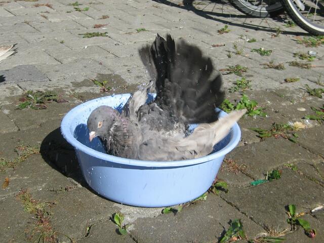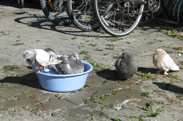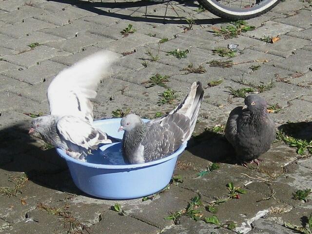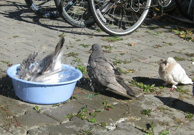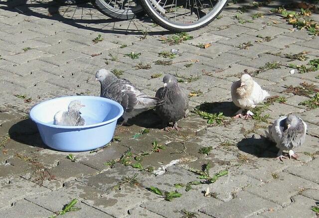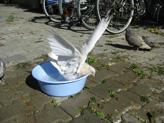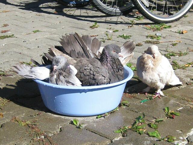 Unser Besuch, die Taube hat uns nach drei Tagen Pflege wieder verlassen. Doch vorher zog es sie bei jedem Versuch, sie frei zu lassen schnurstracks zurück zu unserer Terrasse. Aus dem Käfig beobachtete sie alsdann aufmerksam was alles um sie herum los war. Das war ihr fraglos zuviel und darum flog sie doch noch wie ein Pfeil in die Freiheit. Wir hatten im Tierheim ihretwegen schon angerufen. Dort bekamen wir eine Telefonnummer für den Tauben-Zuständigen in Augsburg. Dieser erzählte uns...