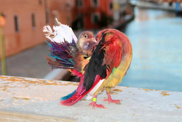 Diese farbige Tauben haben mich in staunen versetzt. Ein junges Mädchen an einer Brücke in Venedig, gab die zwei Tauben an Passanten die sich mit den Tauben fotografieren lassen wollten. Anscheinend sollen in Venedig bunte Tauben aufgetaucht sein und versetzen Touristen in staunen. Ob das mit dem Schweizer Künstler Julian Charriere zutun hat oder nicht entzieht sich meiner Kenntnis. Er soll die Tauben in Kopenhagen gefangen, sanft mit Lebensmittelfarbe bemalt und in Venedig am Rande der...
