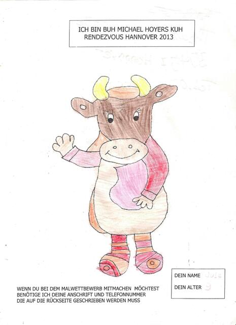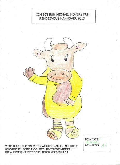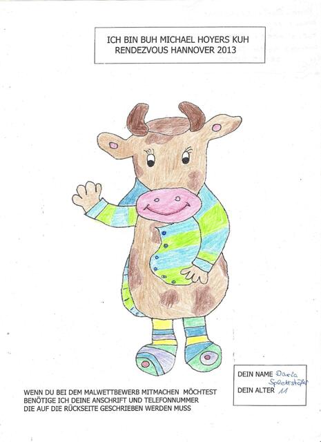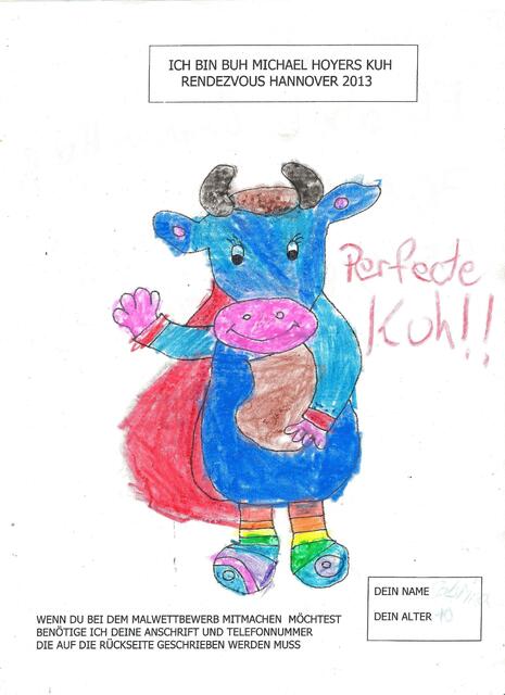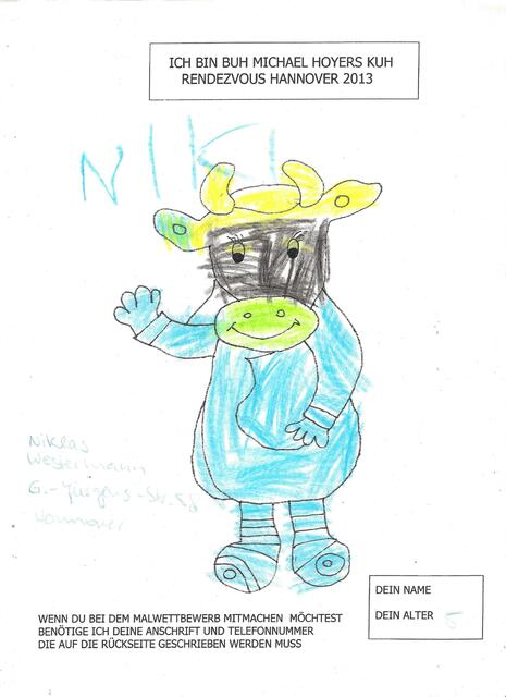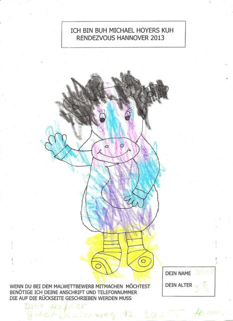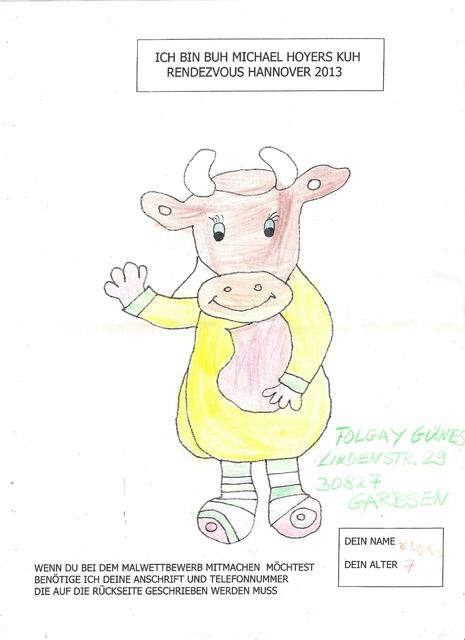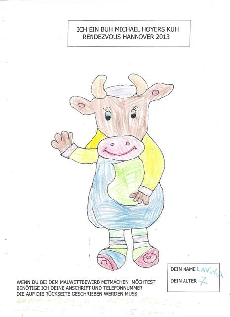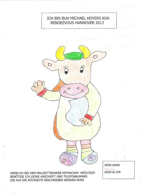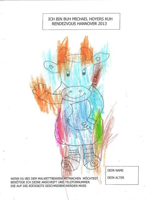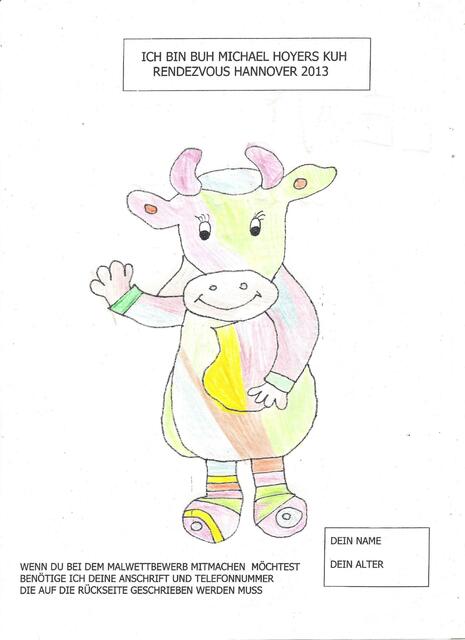 Kimmi und Micha sind Begeistert, die Ergebnisse sind Super, und die Preisverleihung war auch ein schöner Abschluss Macht weiter so.... Ja da ist schon wieder ein Jahr rum, Hoyer ist das 4. Mal Teilnehmer am Rendezvous in Hannover. Ab sofort werden unter seinem Pavillon Kühe bunt gemalt. Die Kuh ist Hoyer seine Schöpfung, er hofft auf ganz viele kleine Künstler/innen. Das Thema 2014 steht schon fest, aber ist ein ganz großes Geheimnis, wieder ein Tier......... 2013 diese Aktion ist zu Ende, wir...