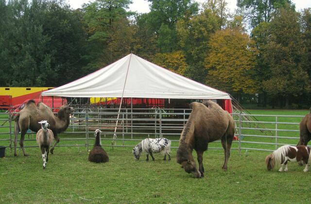 Vor kurzem machte Circus Salto Mortale Station in Meitingen. Bevor das Zirkuszelt aufgebaut war, waren einige Tiere in einem offenen Gehege untergebracht. Als ich wieder mal wegen dem Training in Meitingen war sah ich diese Tiere, Kamel, Lamas und Zwergpferde und machte einige sehr interessante Bilder. Während ich fotografierte kam ein Kind, das die Tiere mit Stroh fütterte.
