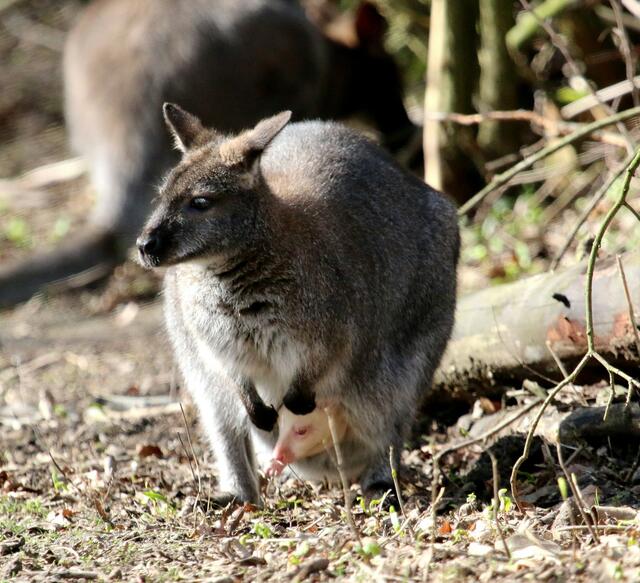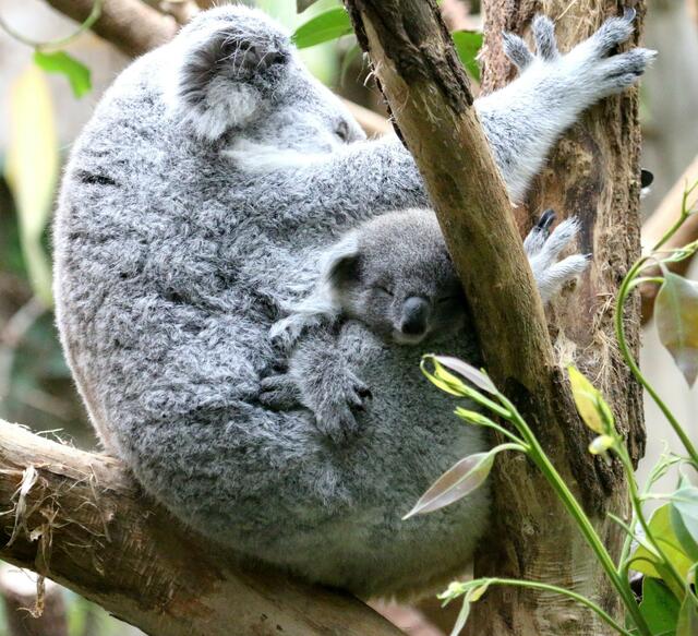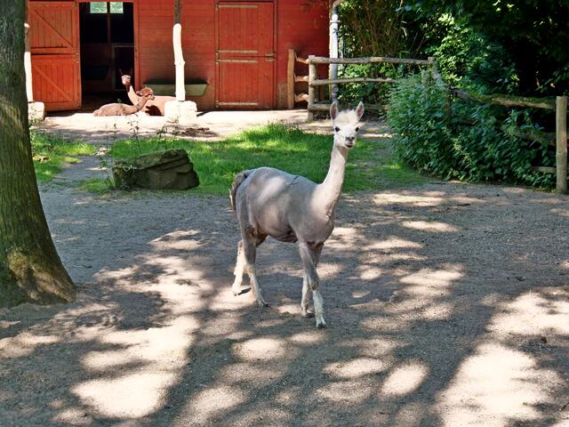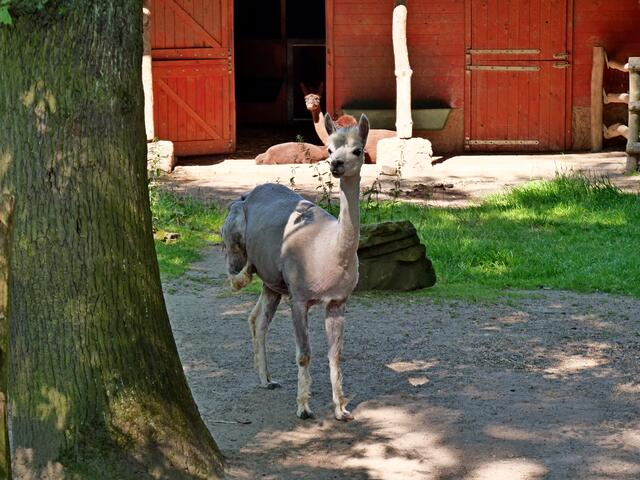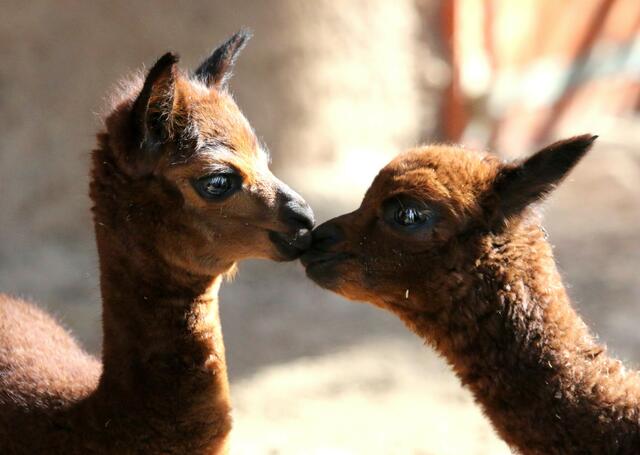 Seit kurzem staksen zwei junge, wenige Wochen alte Lockenköpfe (je ein Männchen und ein Weibchen) auf noch überlangen Beinen im Gehege. Das Alpaka ist eine aus den südamerikanischen Anden stammende, domestizierte Kamelform. Der jüngste Koala-Nachwuchs (YIRIBANA mit Mama EORA) erkundet auch mehr und mehr die Welt.