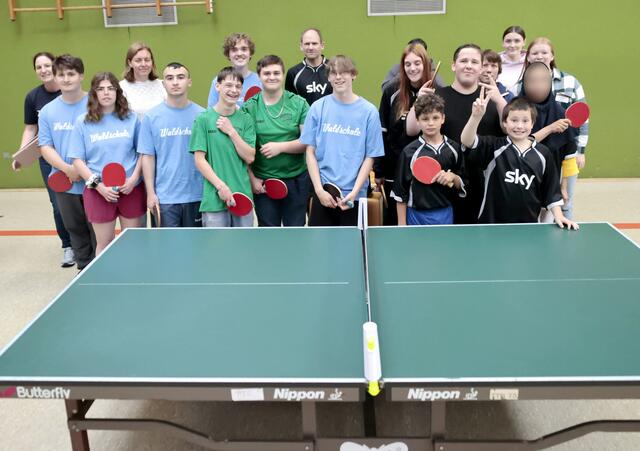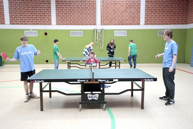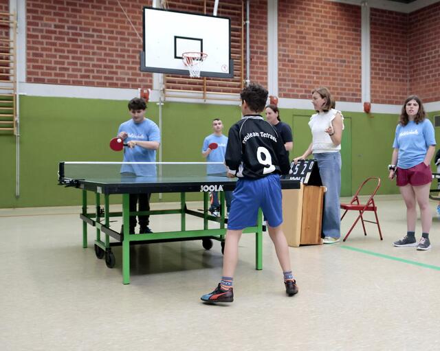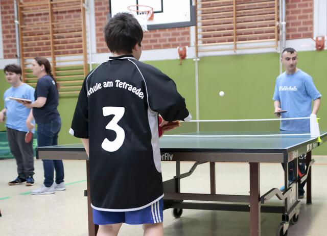 Marcus Rattay: "Ein freundschaftliches Turnier fand vor wenigen Tagen statt. Sportlerinnen und Sportler der Waldschule Hünxe waren zu Besuch in der Schule am Tetraeder, um sich mit dem Team der Tischtennis-AG zu messen. In vier verschiedenen Gruppen fanden die Matches statt. Das Publikum konnte spannende, faire und sehr ausgeglichene Spiele bestaunen. So ausgeglichen, dass in einer Gruppe am Ende des Turniers absoluter Gleichstand in der Tabelle herrschte. Großes Glück war auch, dass Antonio...