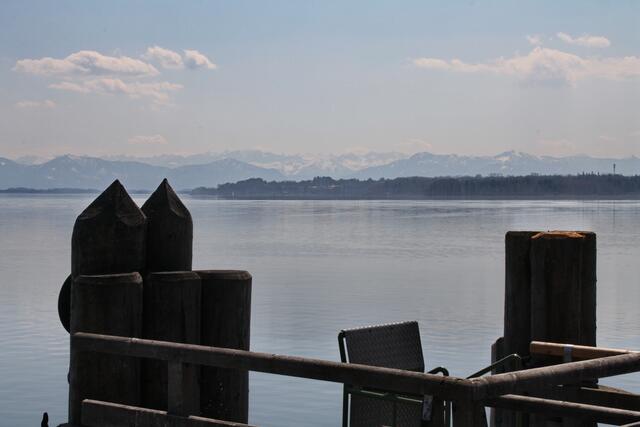 Schöner kann man nicht Tagen: Blick über den Garten der Akademie für Politische Bildung in Tutzing auf den Starnberger See (Foto: Kai Debus)
