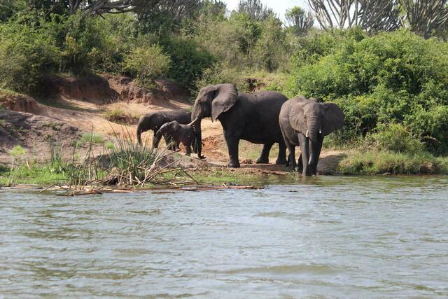 Im Queen Elizabeth Nationalpark ist die Vegetation dürftiger als im Murchison Falls Nationalpark. Dafür übernachten wir in sogenannten Bandas – Luxuszelten im Außendusche – mitten im Park. Mir wurde das Warthog-Zelt zugewiesen, ich schlafe also im Warzenschwein. Wir dürfen die Bandas nachts nicht verlassen, da angeblich auch Raubtiere durchs Camp ziehen. Zum Abendessen werden wir abgeholt, da es bereits dämmert und wir den Weg dann nicht alleine beschreiten dürfen. Auf jeden Fall ist eine Nacht...