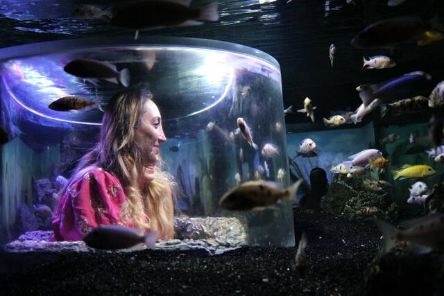 "Unterwasserwanderung" entlang der 39 Großaquarien
