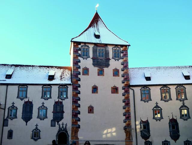 Nach Füssen unter besonderen Umständen Man könnte sich so freuen an einem solch sonnigen Samstag zwischen den Jahren. Vormittags um 10 Uhr bin ich schon in Füssen, die Fahrt durch Postkartenlandschaften war beeindruckend, jetzt bin ich eine Stunde zu früh dran, hole die Kamera vom Rücksitz und drehe eine kurze Runde den Lech entlang, ein paar Meter durch die gerade erwachende historische Altstadt bis hinauf in den Innenhof des Hohen Schlosses. Motive im Überfluß an allen Ecken und Gassen, doch...